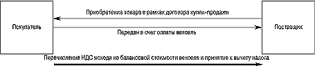 В течение 2007 года до внесения изменений в налоговое законодательство налогоплательщики должны были принимать к вычету налог по приобретенным товарам исходя из расчета балансовой стоимости векселя. Порядок расчетов с применением ценных бумаг в 2007 году показан на схеме ниже.